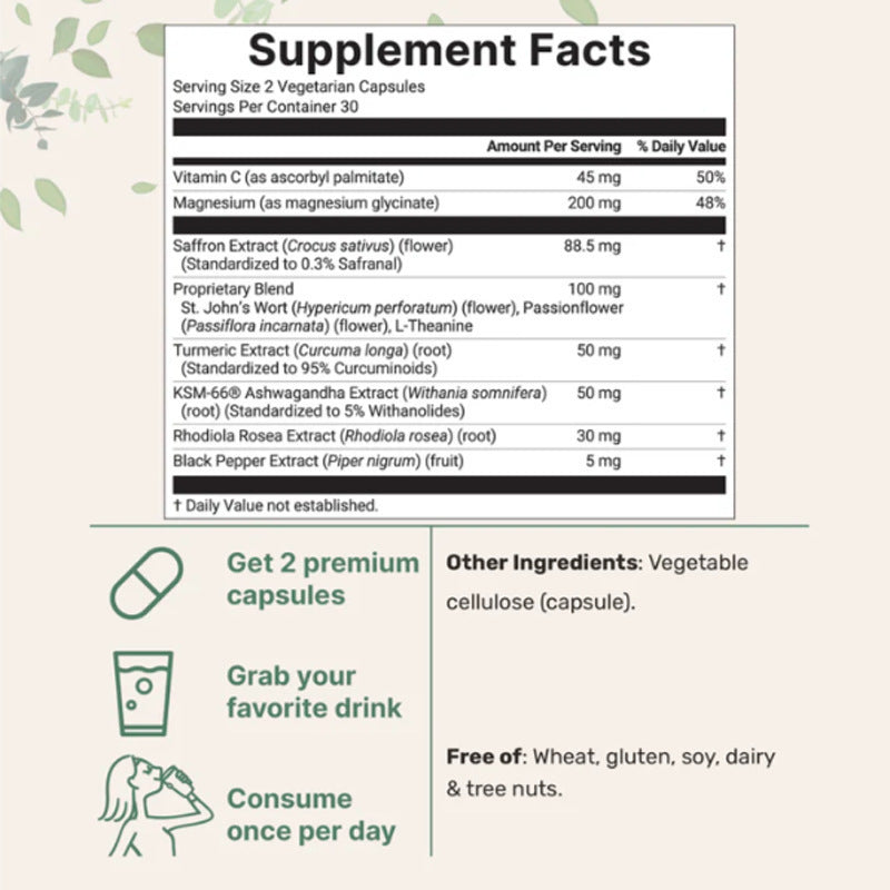 Made with saffron and ashwagandha to support calmness reduce stress and improve emotional balance